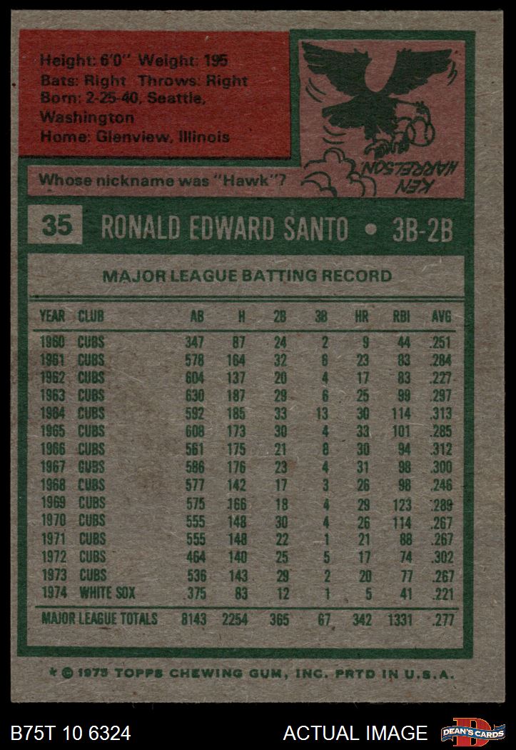 1975 Topps #35 Ron Santo 7.5 - NM+