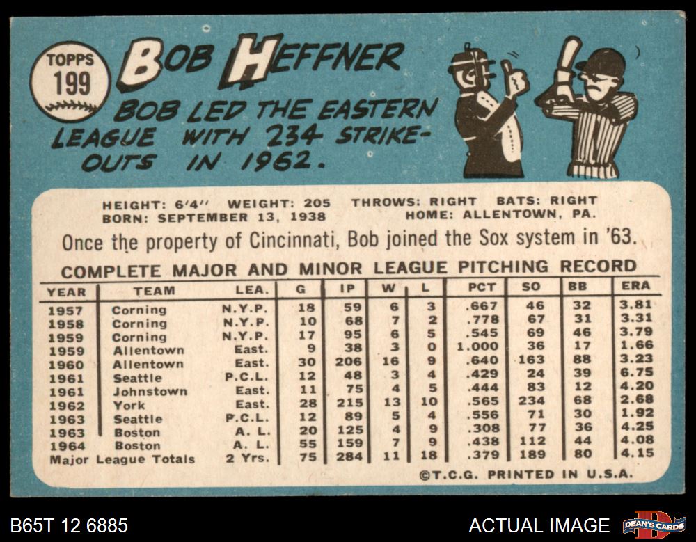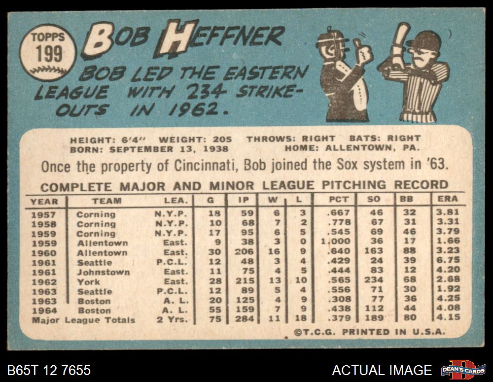 1965 Topps #199 Bob Heffner