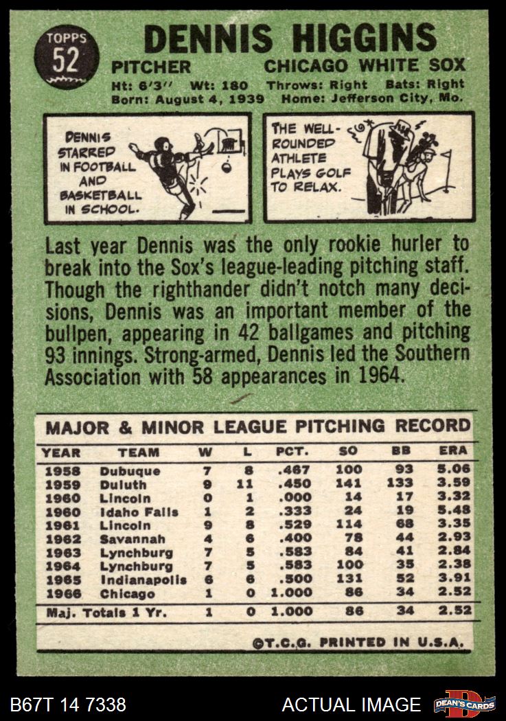 1967 Topps #52 Dennis Higgins