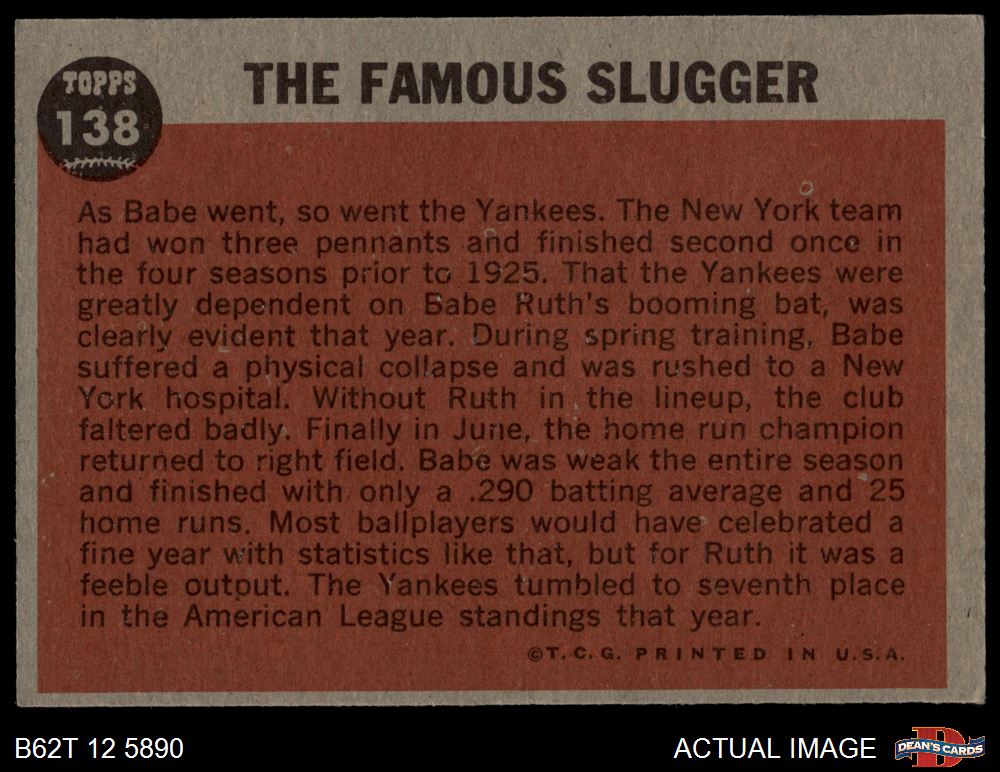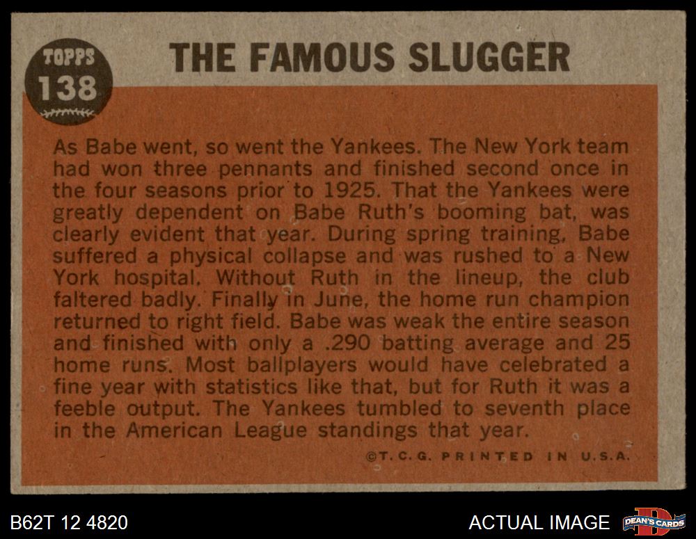 1962 Topps #138 NRM - Babe Ruth The Famous Slugger 4 - VG/EX
