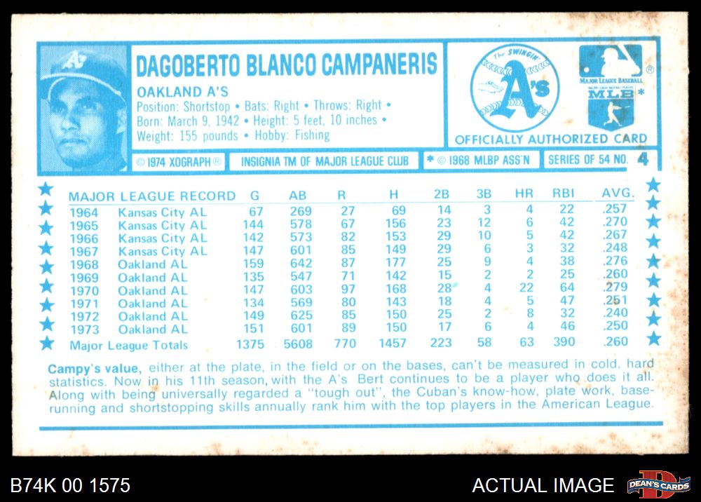 1974 Kellogg's #4 Bert Campaneris 2 - GOOD