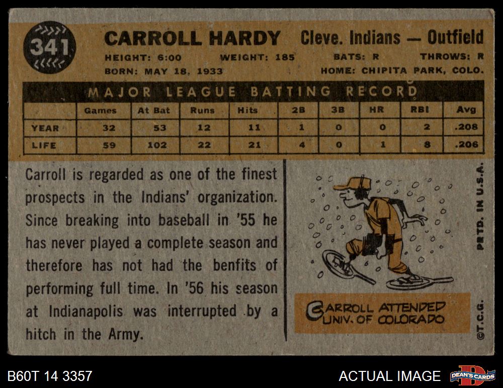 1960 Topps #341 Carroll Hardy 2.5 - GD+
