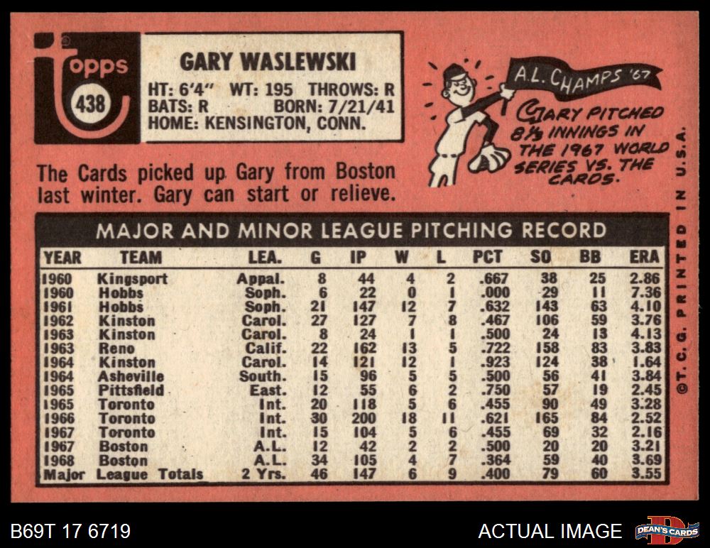1969 Topps #438 Gary Waslewski