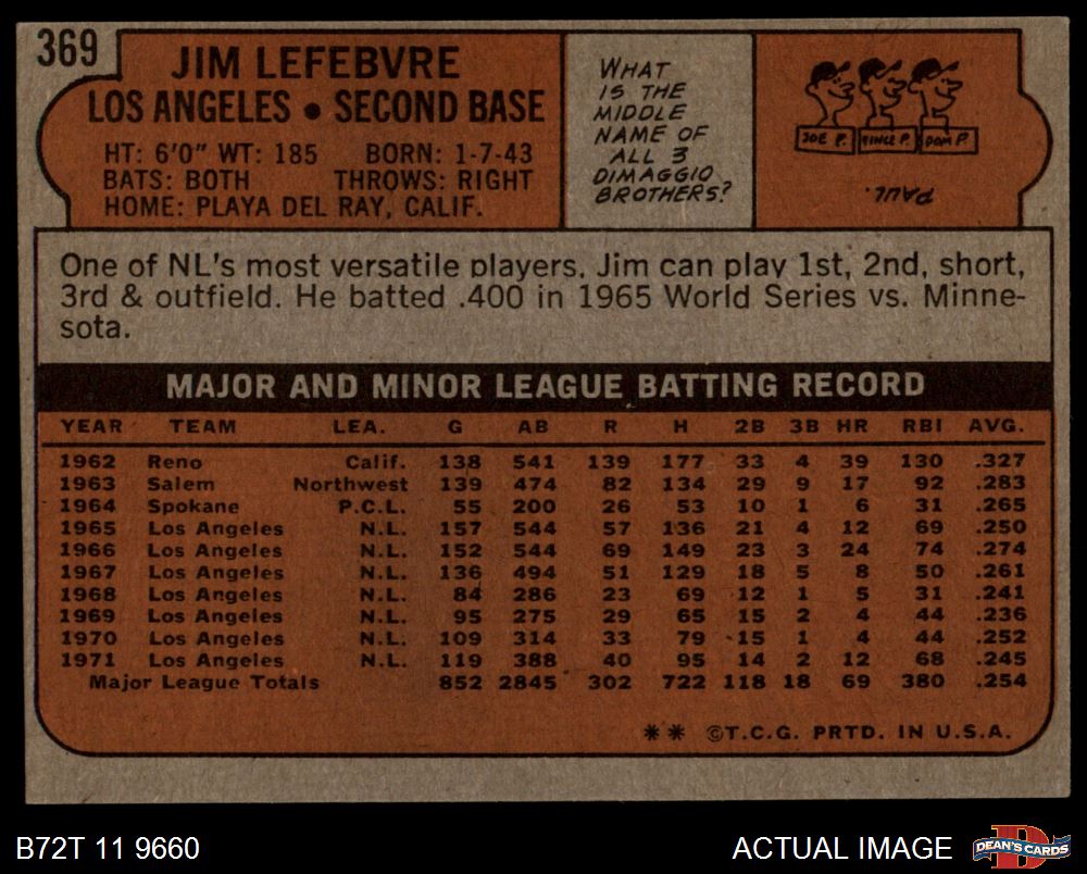 1972 Topps #369 Jim LeFebvre 3 - VG