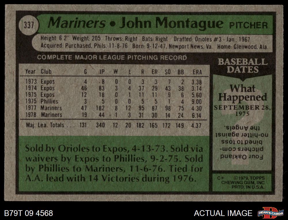 1979 Topps #337 John Montague 3 - VG