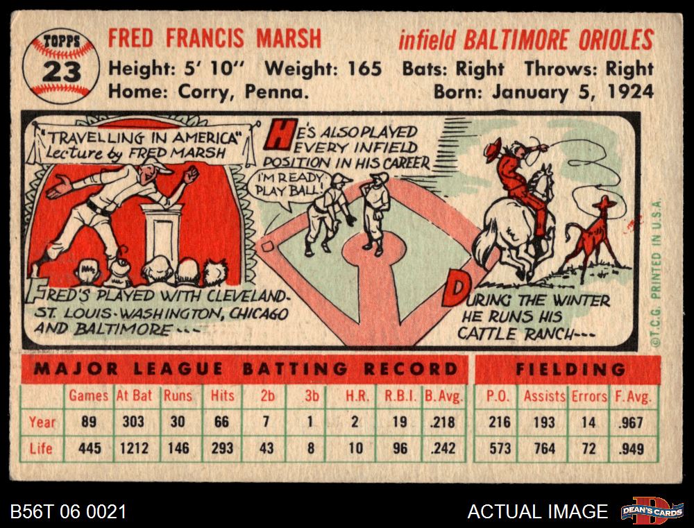 1956 Topps #23 Fred Marsh 3.5 - VG+