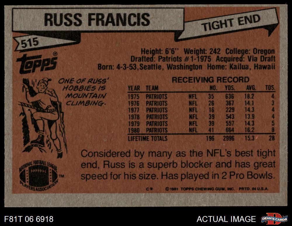 1981 Topps #515 Russ Francis