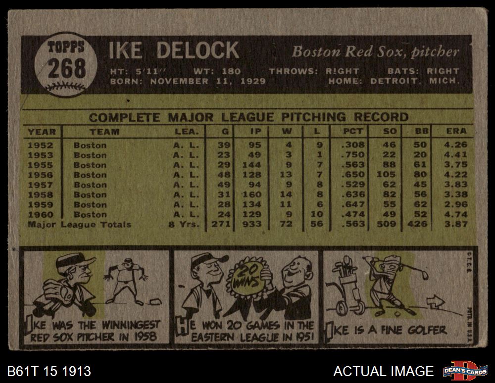 1961 Topps #268 Green Border Stays in Box or Extends Below Box Ike Delock 2 - GOOD