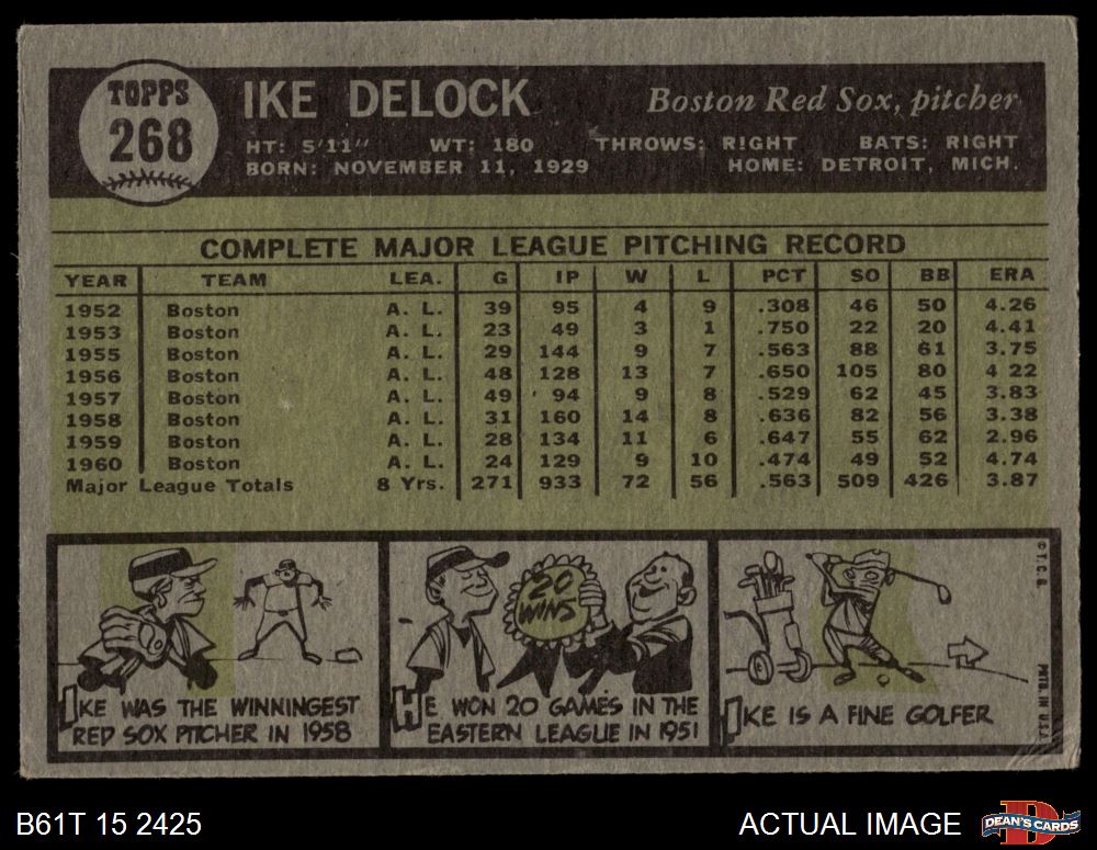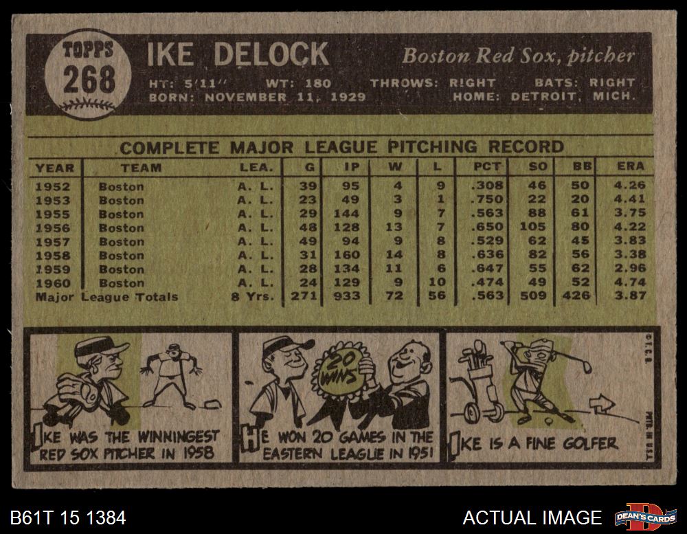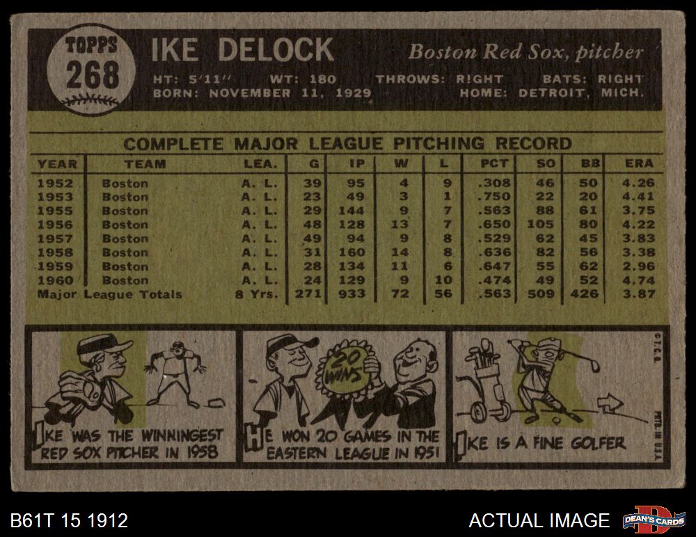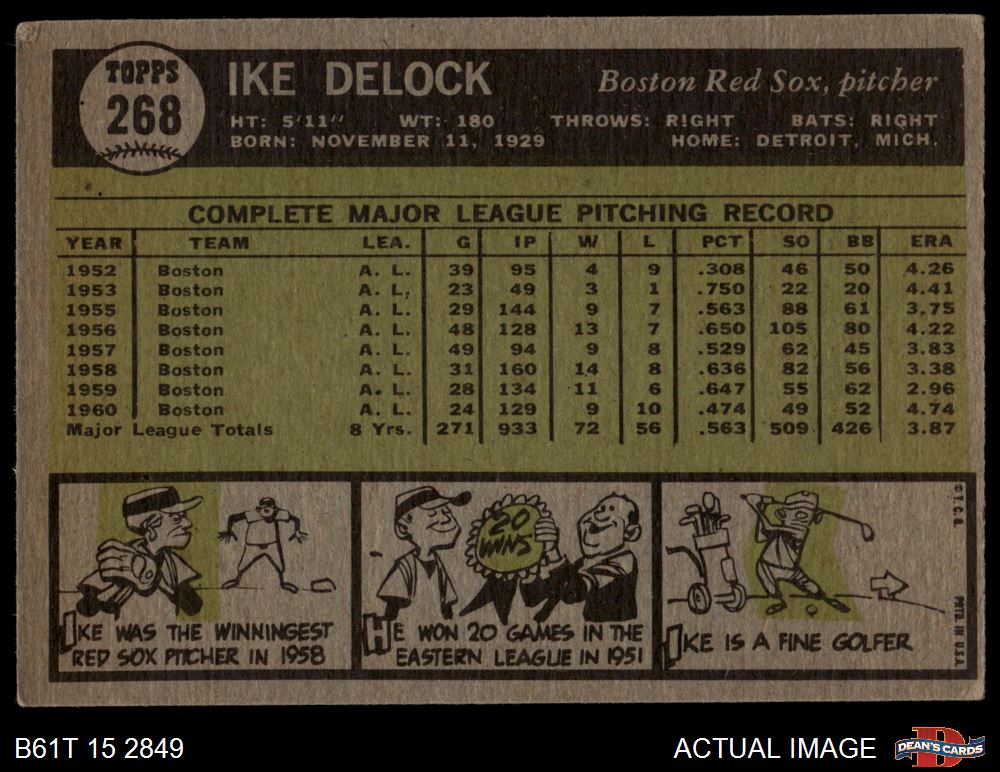 1961 Topps #268 Green Border Stays in Box or Extends Below Box Ike Delock 3 - VG
