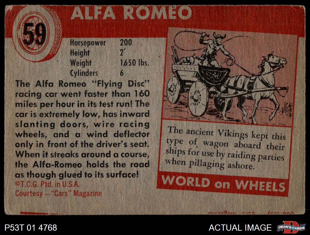 1954 Topps World on Wheels #59 Alfa Romeo