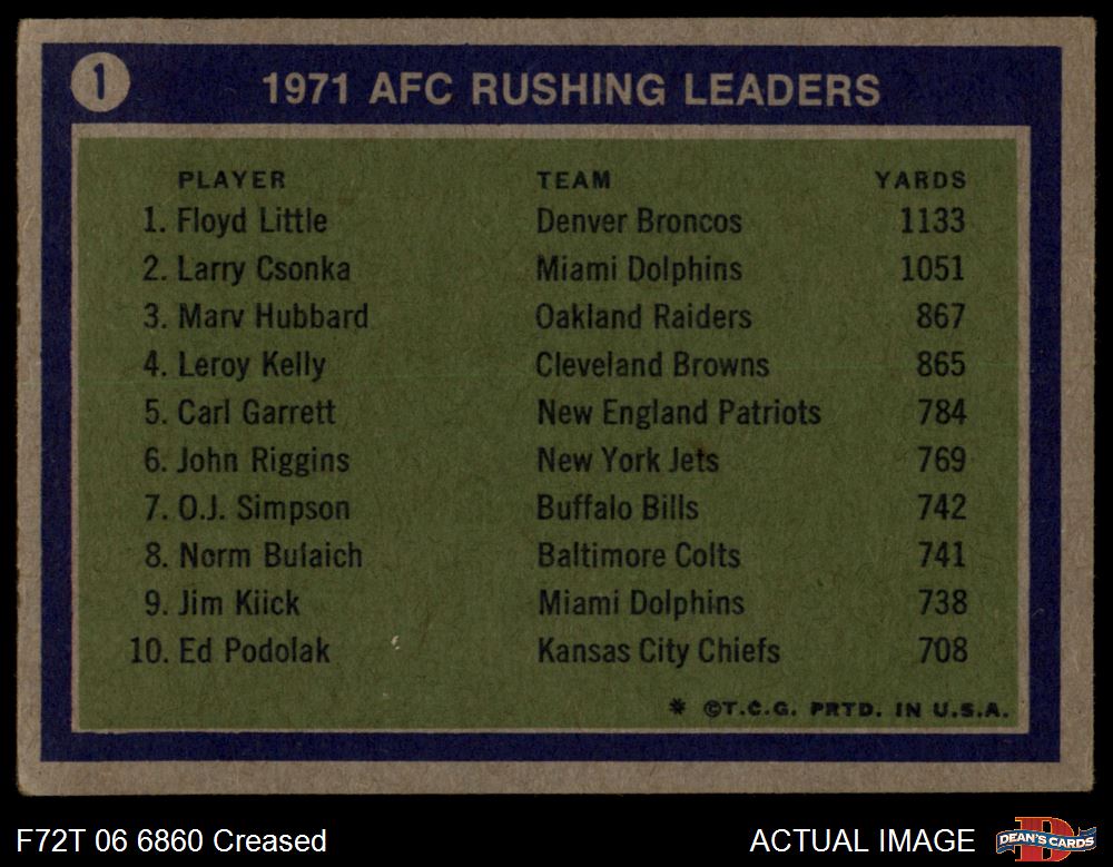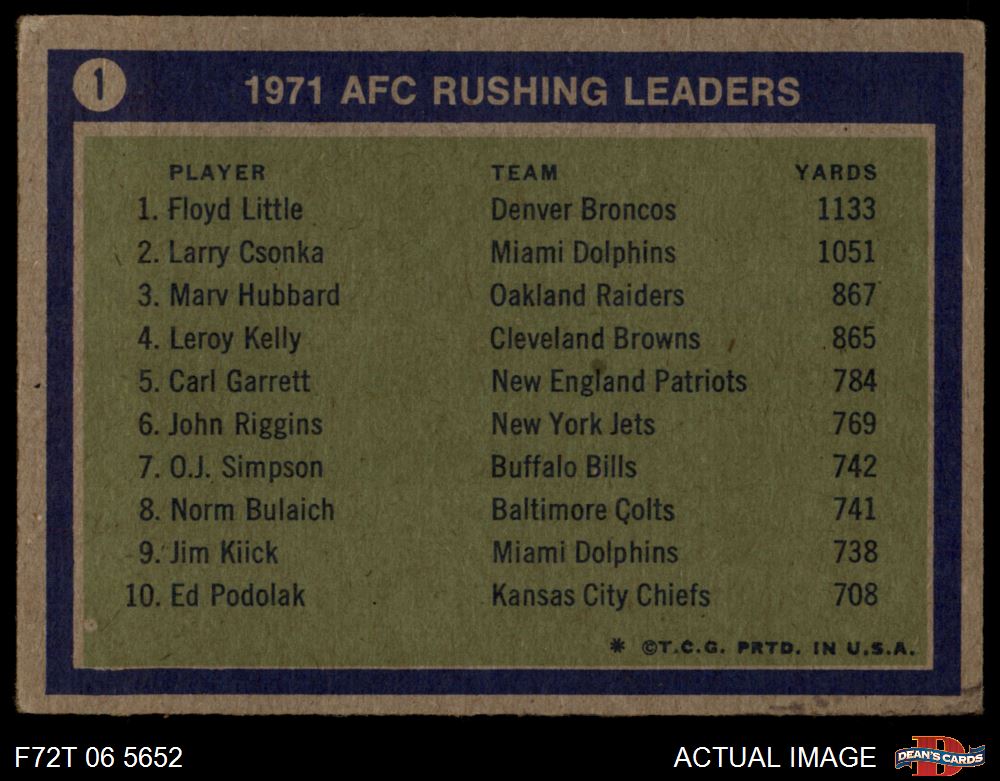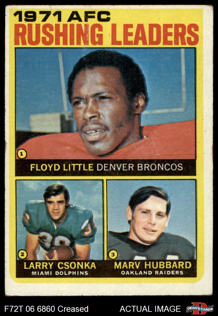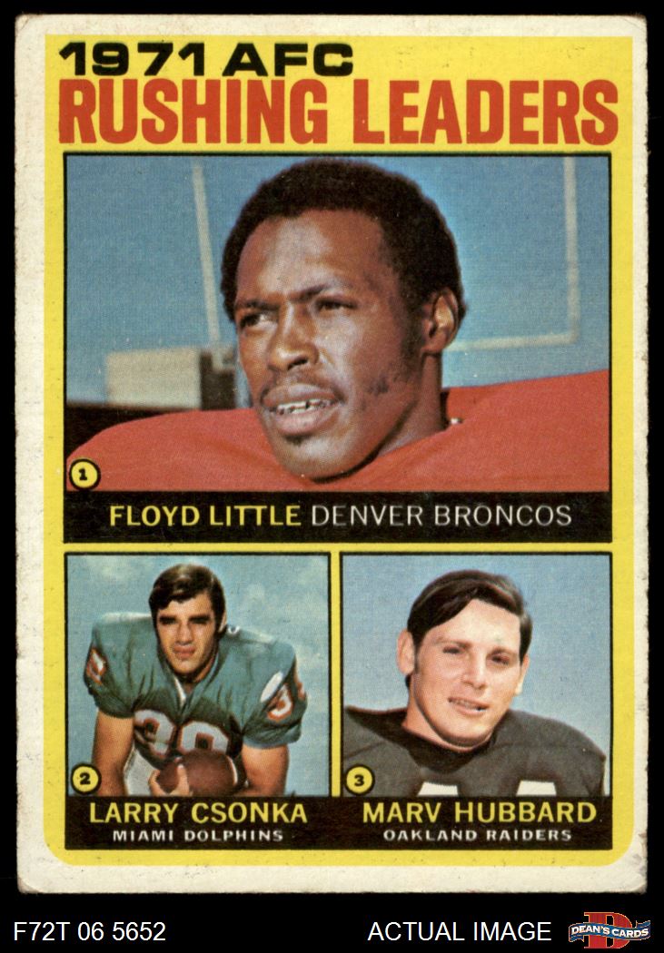 1972 Topps #1 - Larry Csonka / Floyd Little / Marv Hubbard AFC Rushing Leaders 2 - GOOD