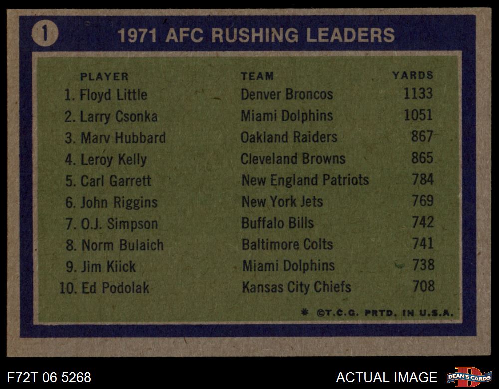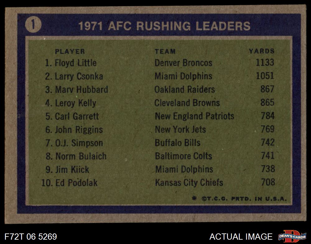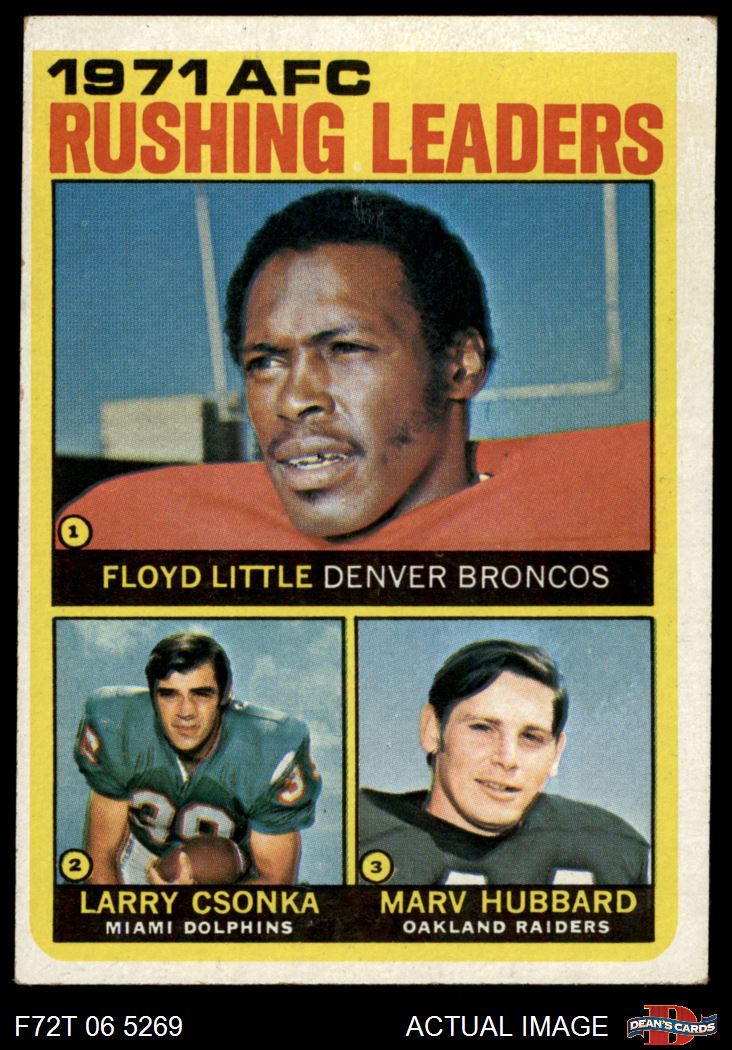 1972 Topps #1 - Larry Csonka / Floyd Little / Marv Hubbard AFC Rushing Leaders 4 - VG/EX