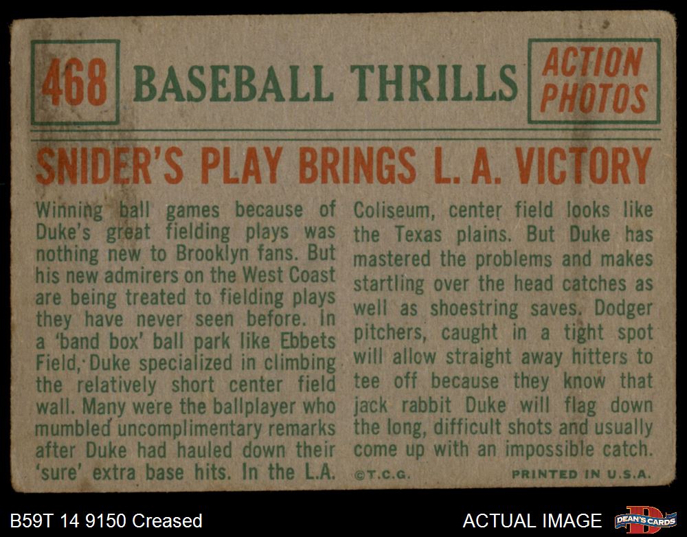 1959 Topps #468 - Duke Snider Play Brings L.A. Victory 1.5 - FAIR
