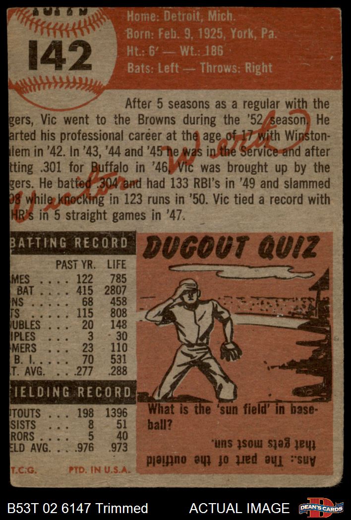 1953 Topps #142 Vic Wertz