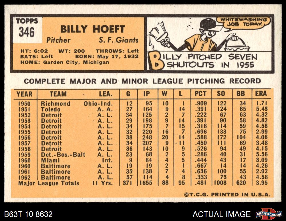 1963 Topps #346 Billy Hoeft 4 - VG/EX