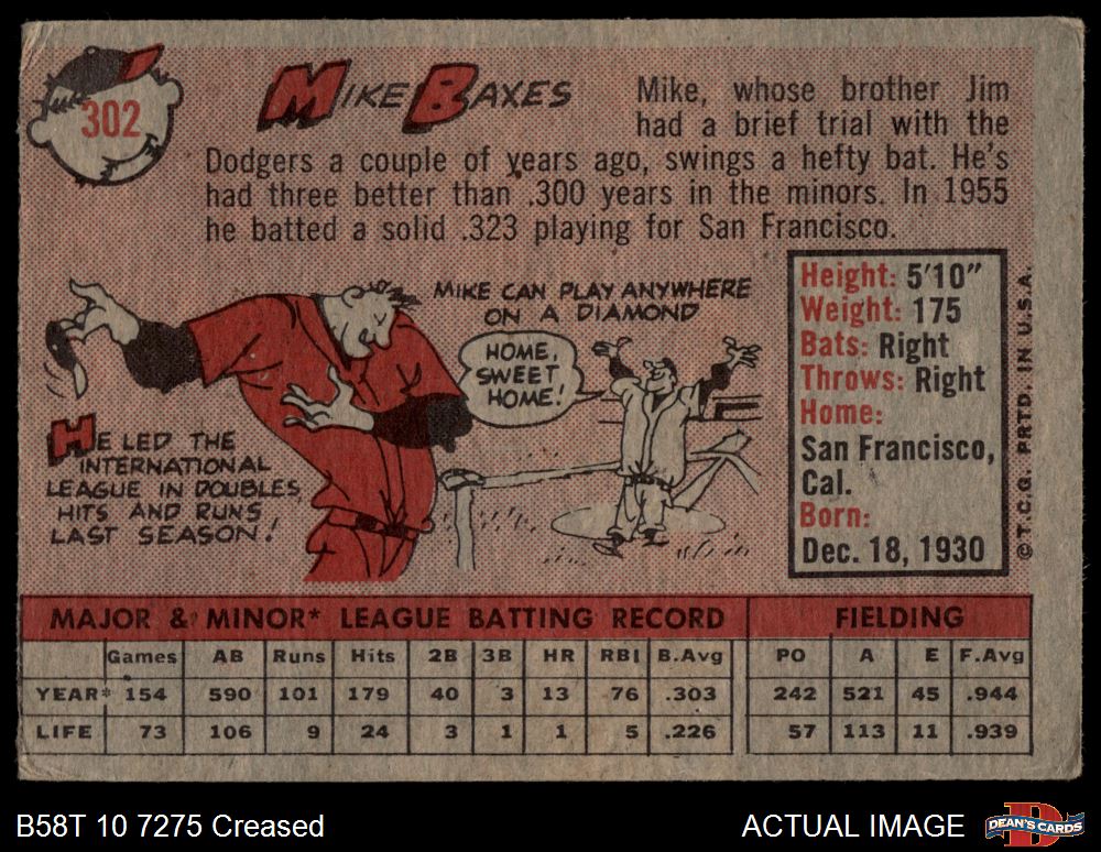1958 Topps #302 Mike Baxes