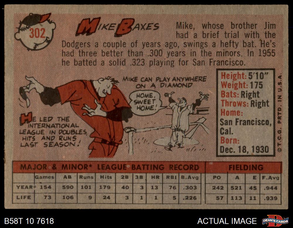 1958 Topps #302 Mike Baxes 4 - VG/EX