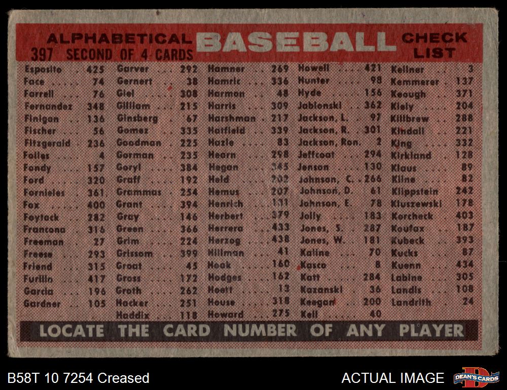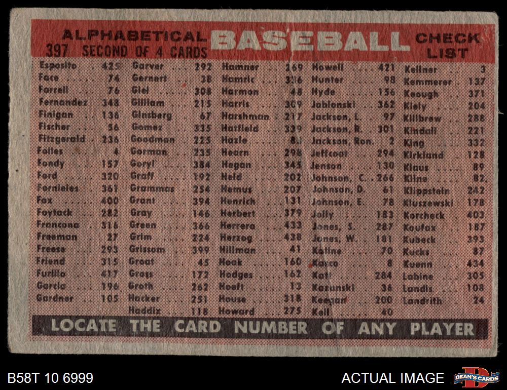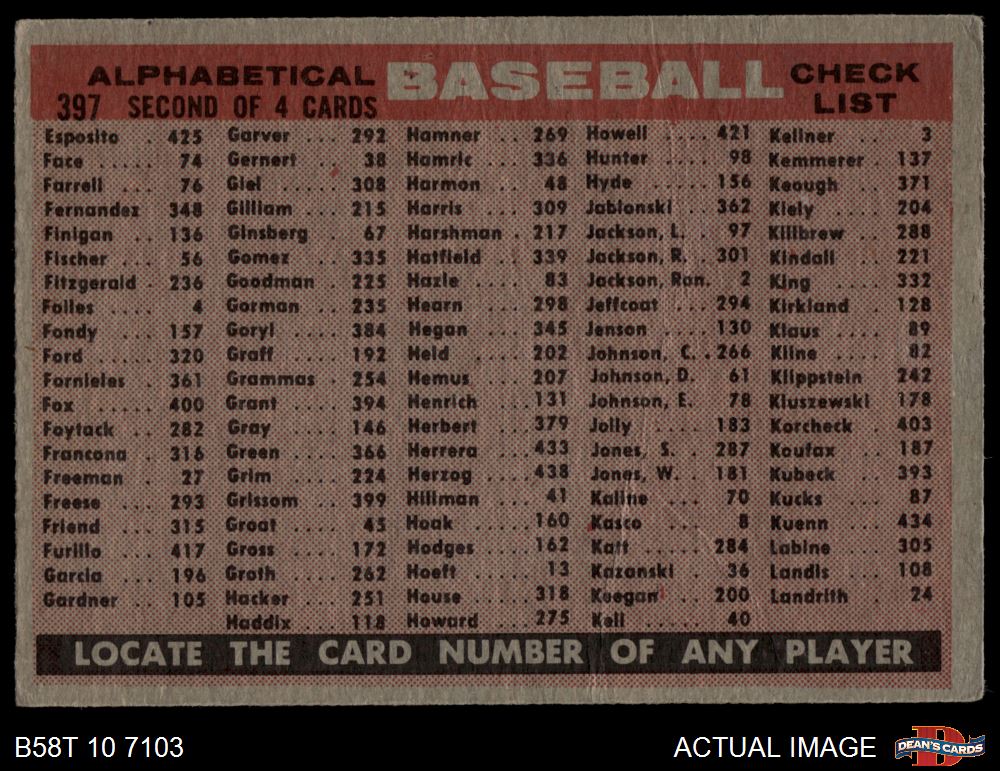 1958 Topps #397 ALP Tigers Team Checklist 1.5 - FAIR