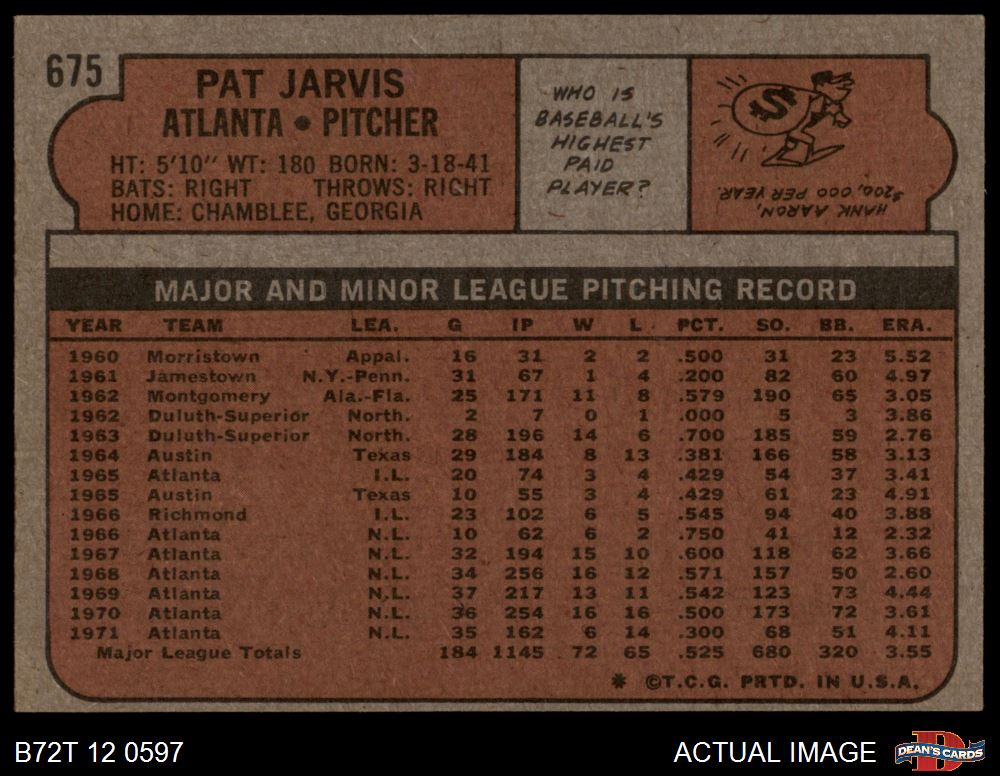 1972 Topps #675 Pat Jarvis