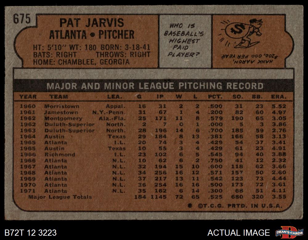1972 Topps #675 Pat Jarvis 2 - GOOD