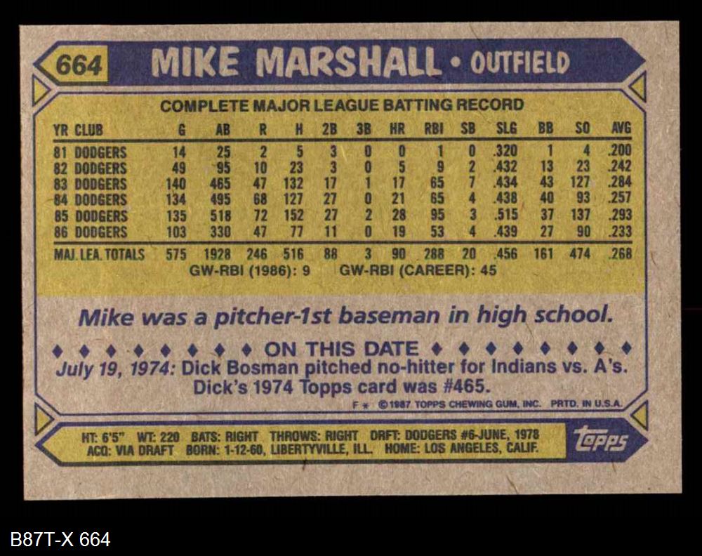 1987 Topps #664 Mike Marshall