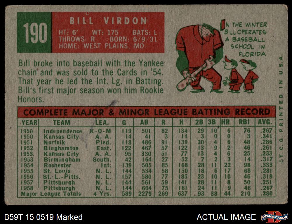 1959 Topps #190 Bill Virdon 1.5 - FAIR