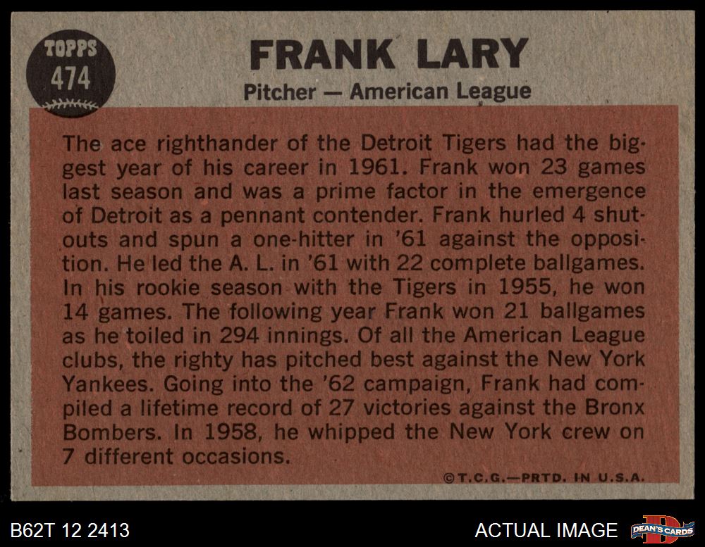 1962 Topps #474 - Frank Lary All-Star 6 - EX/MT