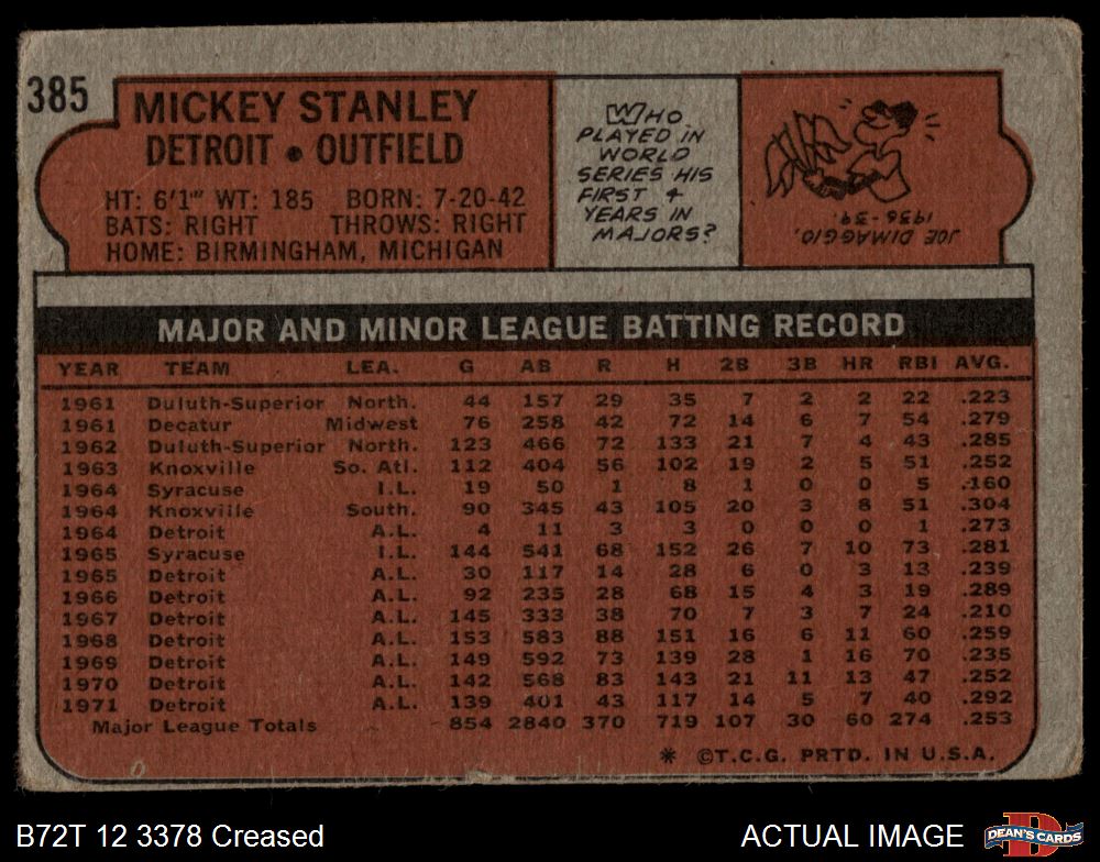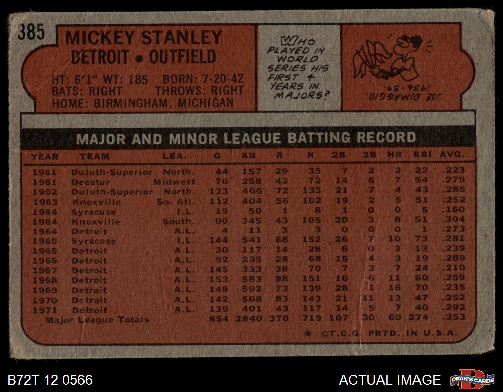 1972 Topps #385 Mickey Stanley 1 - POOR