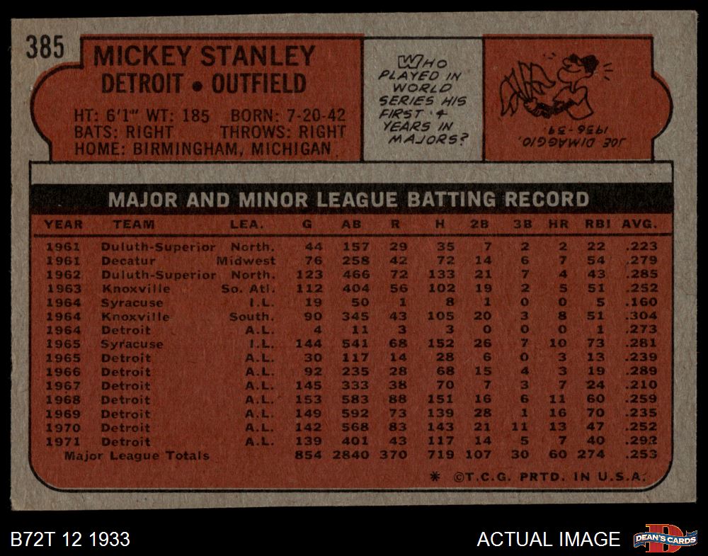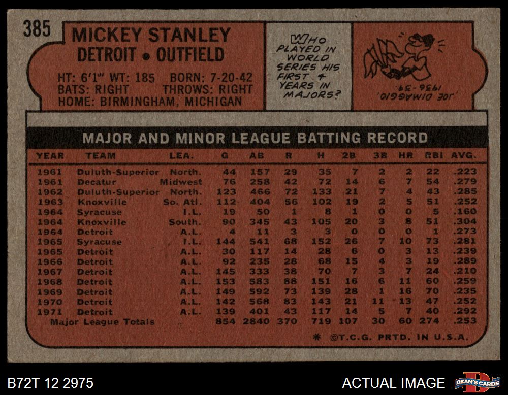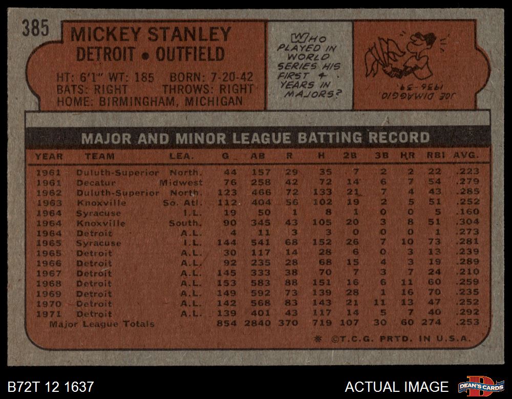 1972 Topps #385 Mickey Stanley