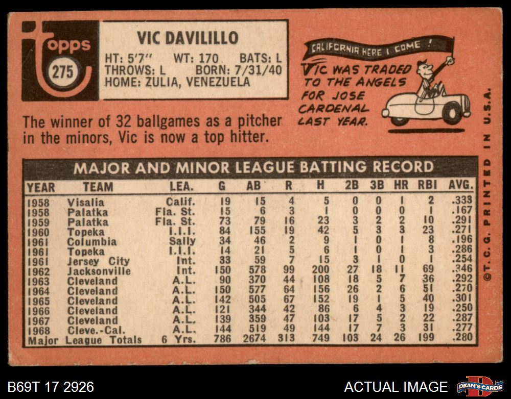 1969 Topps #275 Vic Davalillo 2 - GOOD