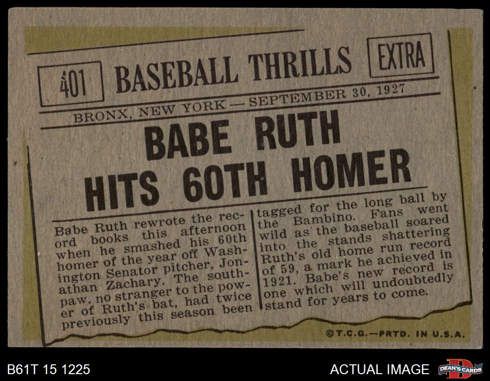 1961 Topps #401  -  Babe Ruth Baseball Thrills Front Thumbnail