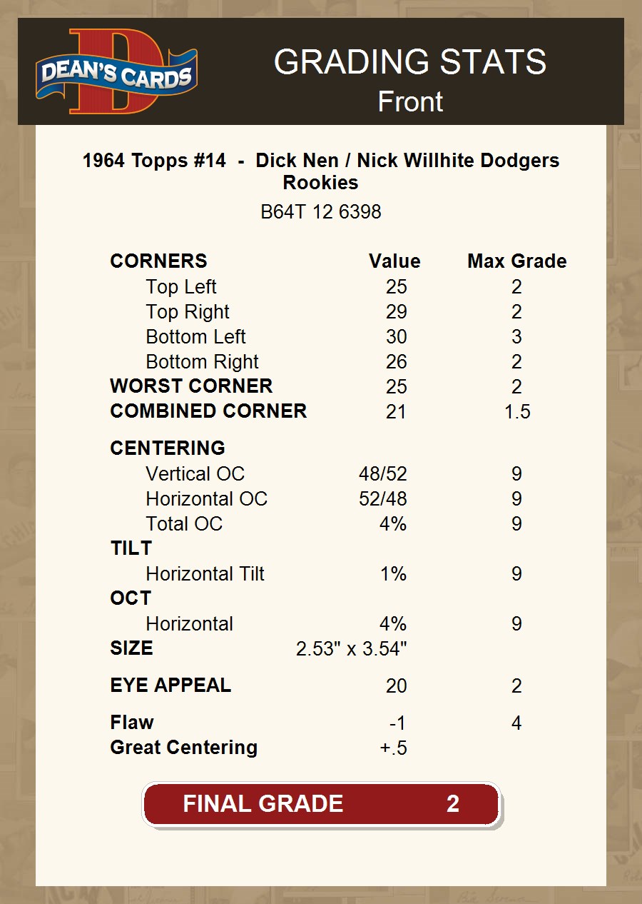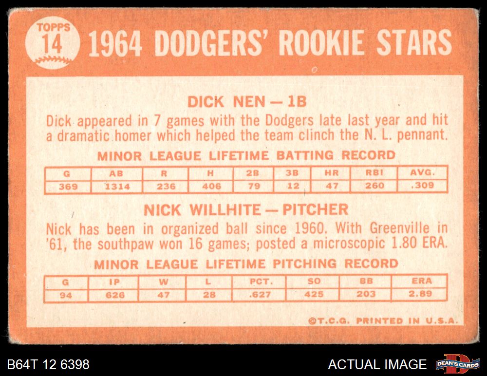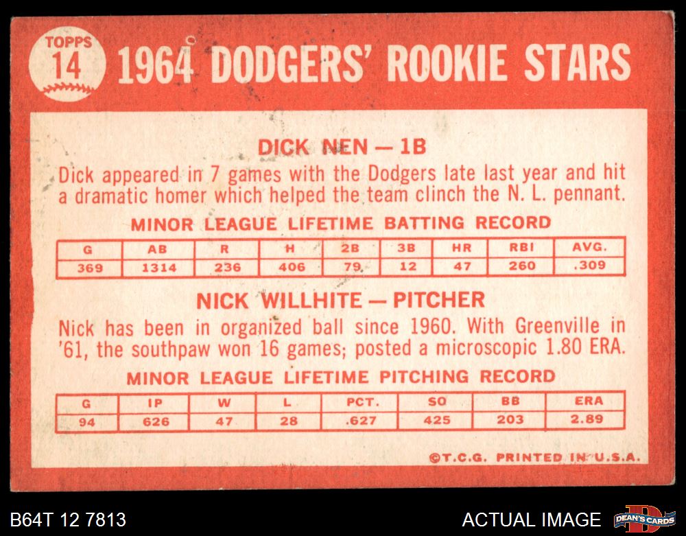 1964 Topps #14 - Dick Nen / Nick Willhite Dodgers Rookies 2 - GOOD