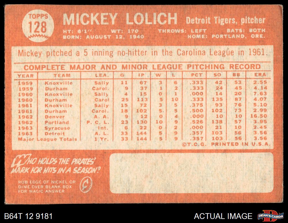 1964 Topps #128 Mickey Lolich 2 - GOOD