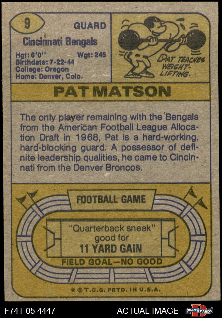 1974 Topps #9 ONE Pat Matson 4 - VG/EX