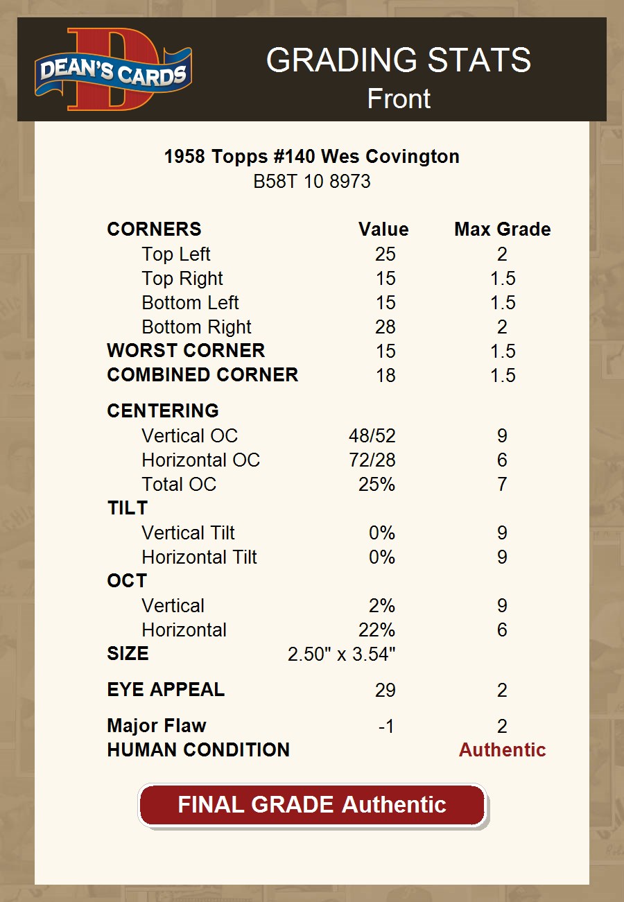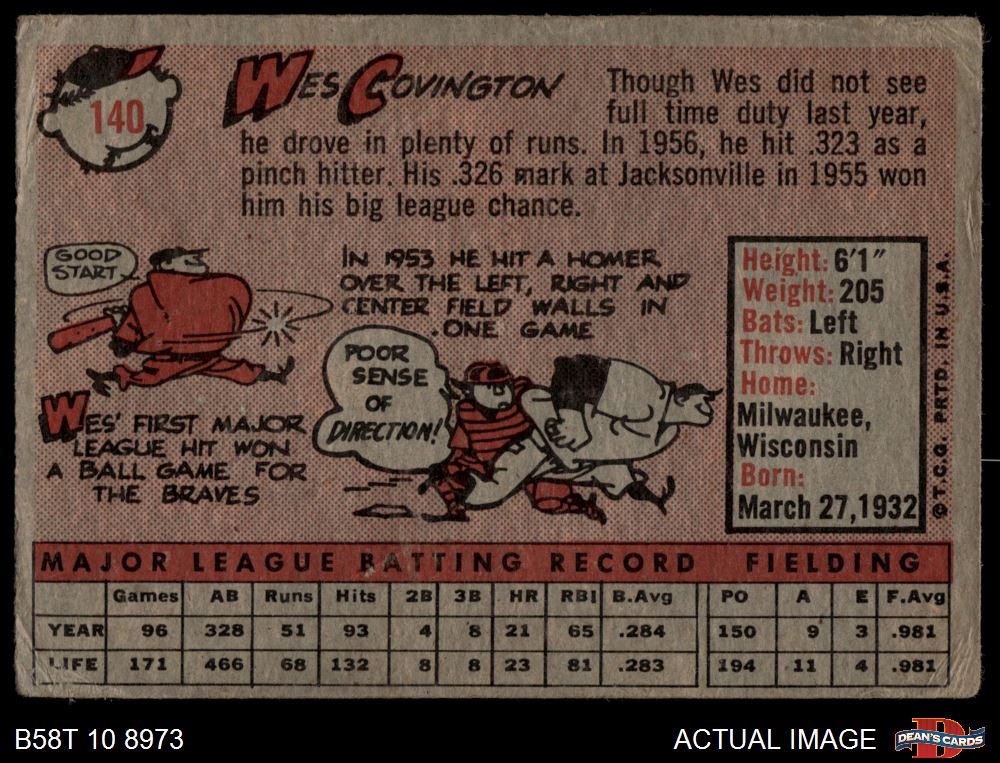 1958 Topps #140 Wes Covington AUTHENTIC