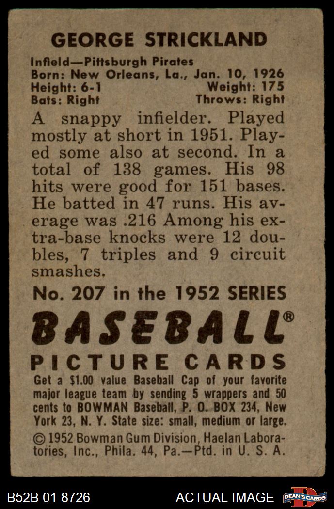 1952 Bowman #207 George Strickland 1.5 - FAIR