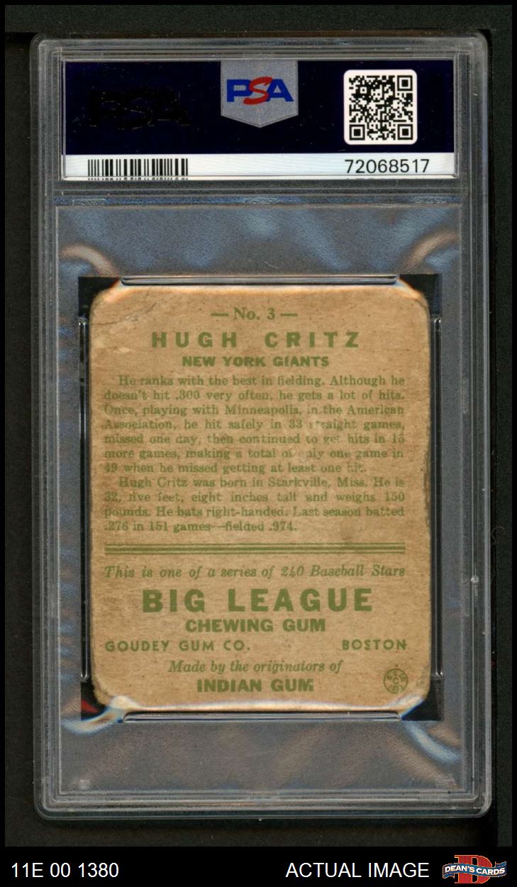 1933 Goudey #3 Hugh Critz PSA 1 - POOR