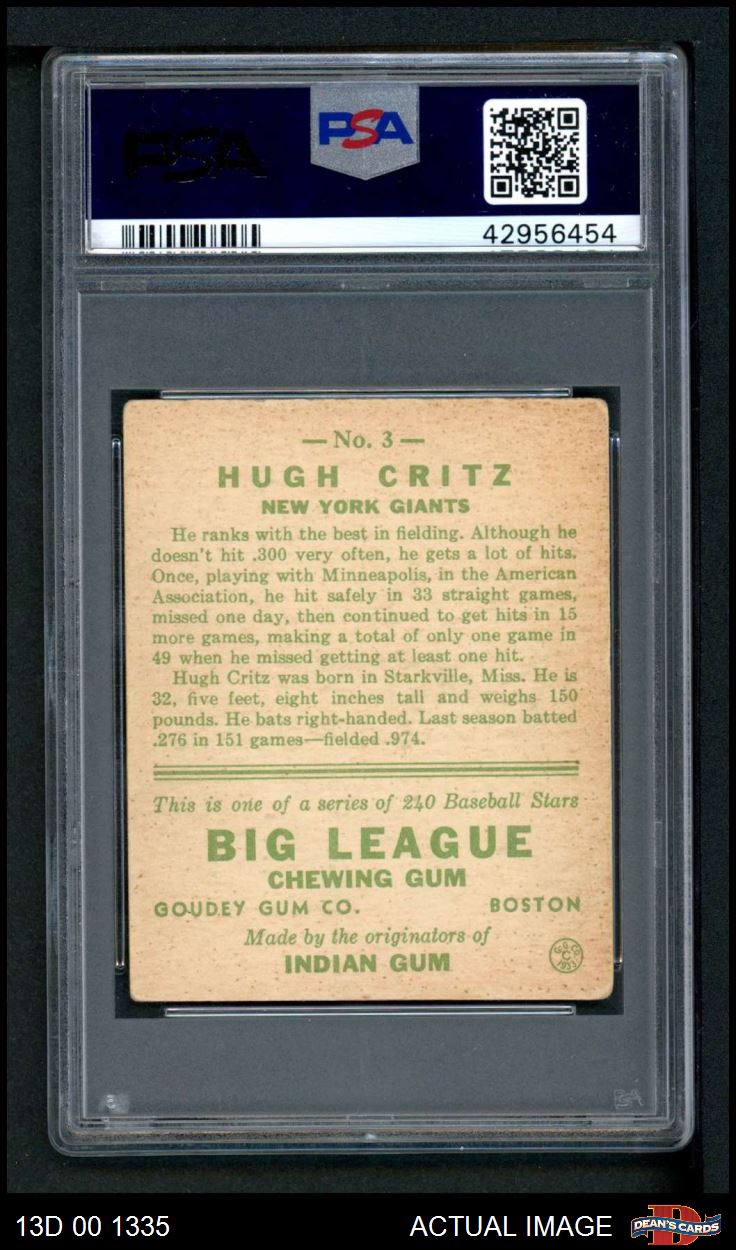 1933 Goudey #3 Hugh Critz PSA 3 - VG
