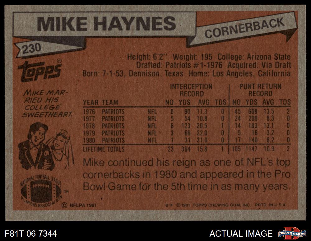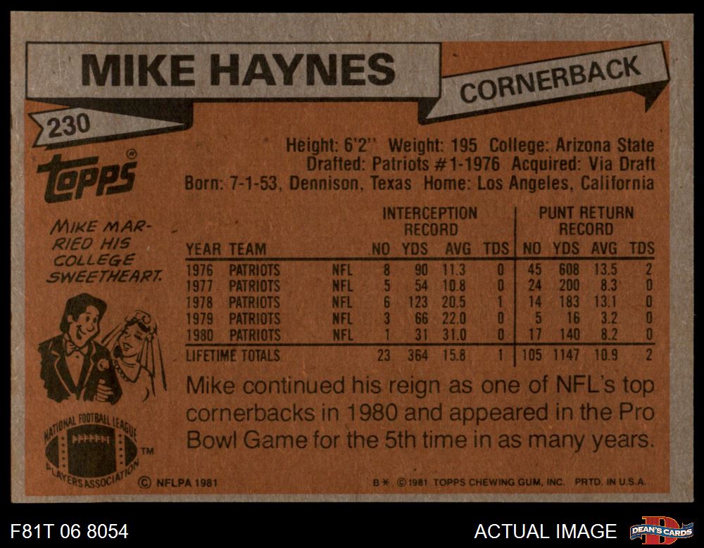 1981 Topps #230 Mike Haynes