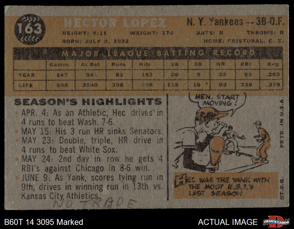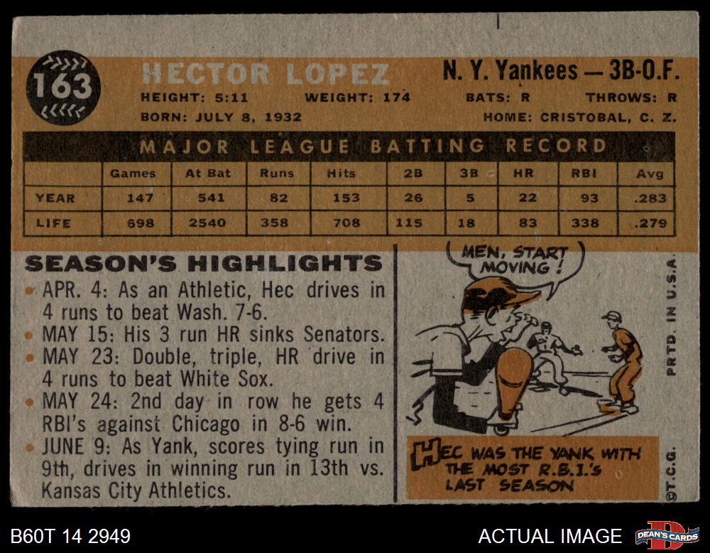 1960 Topps #163 Hector Lopez 1.5 - FAIR
