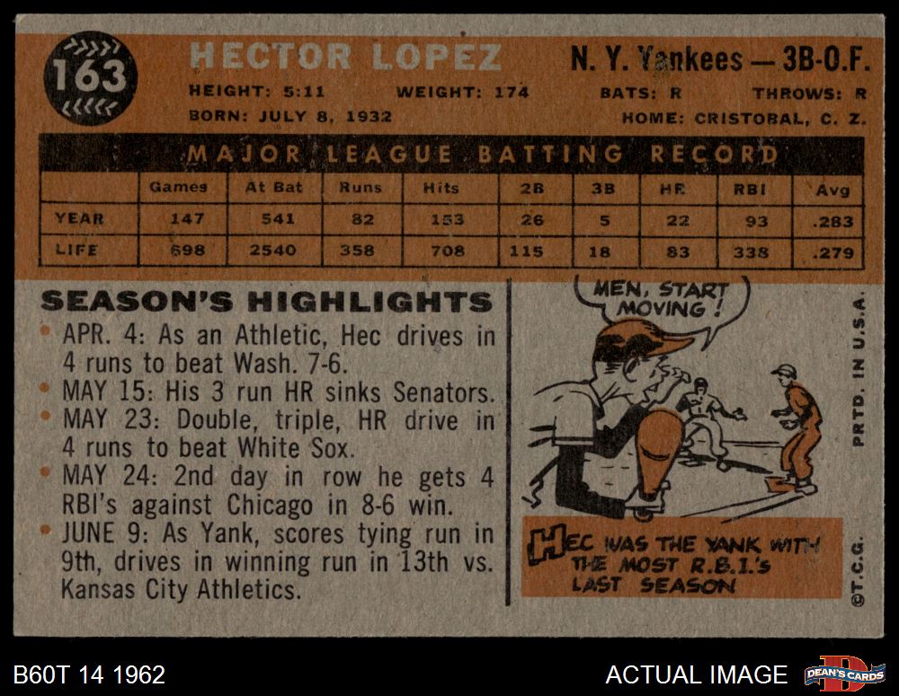 1960 Topps #163 Hector Lopez 3.5 - VG+