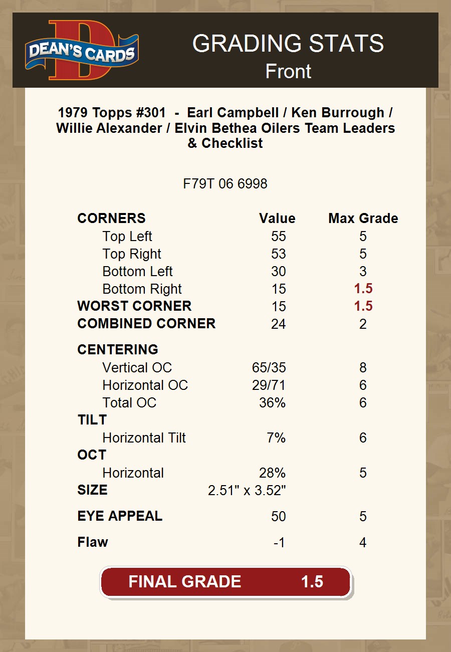 1979 Topps #301 - Earl Campbell / Ken Burrough / Willie Alexander / Elvin Bethea Oilers Team Leaders & Checklist 1.5 - FAIR