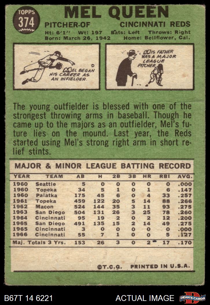 1967 Topps #374 xSL Mel Queen