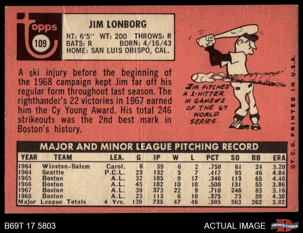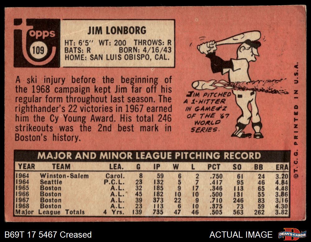 1969 Topps #109 Jim Lonborg 2 - GOOD
