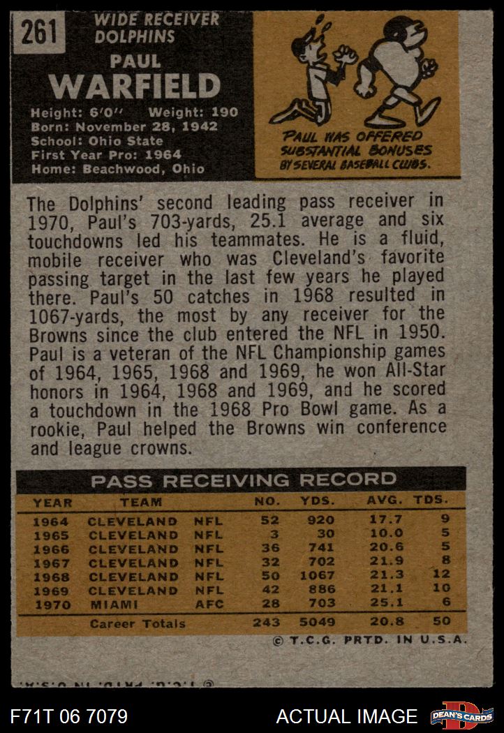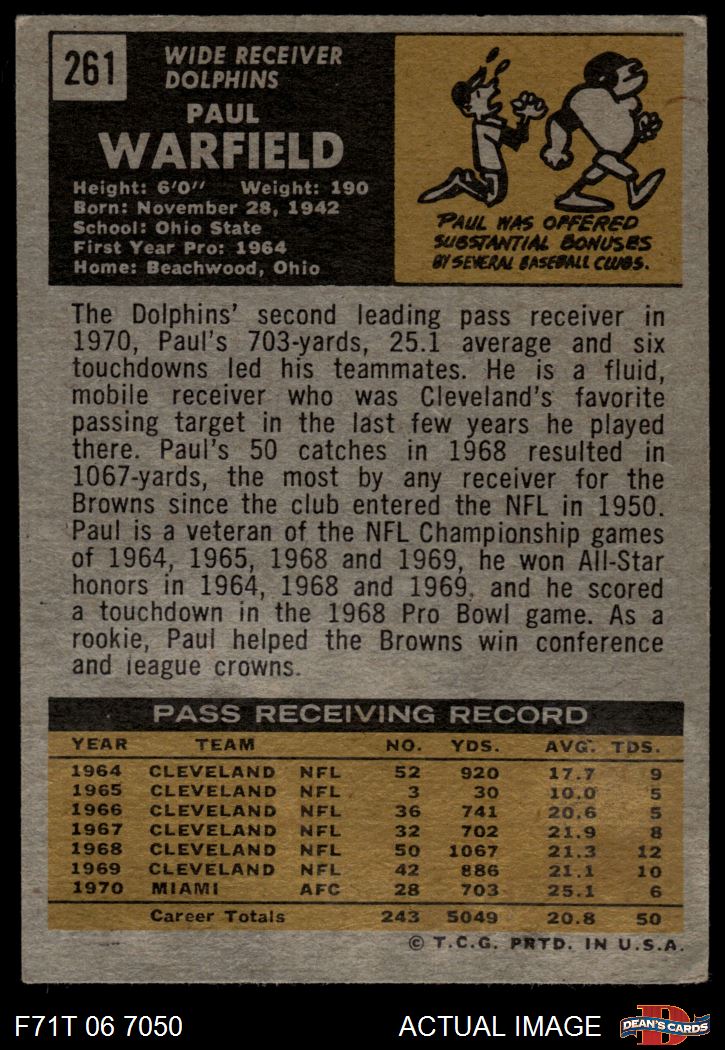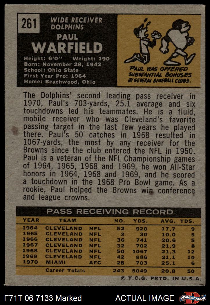 1971 Topps #261 Paul Warfield Front Thumbnail