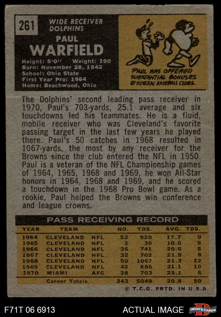 1971 Topps #261 Paul Warfield 2.5 - GD+