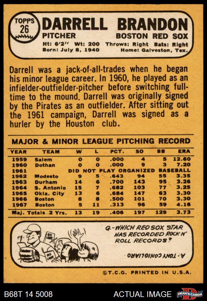 1968 Topps #26 A Darrell Brandon 7 - NM