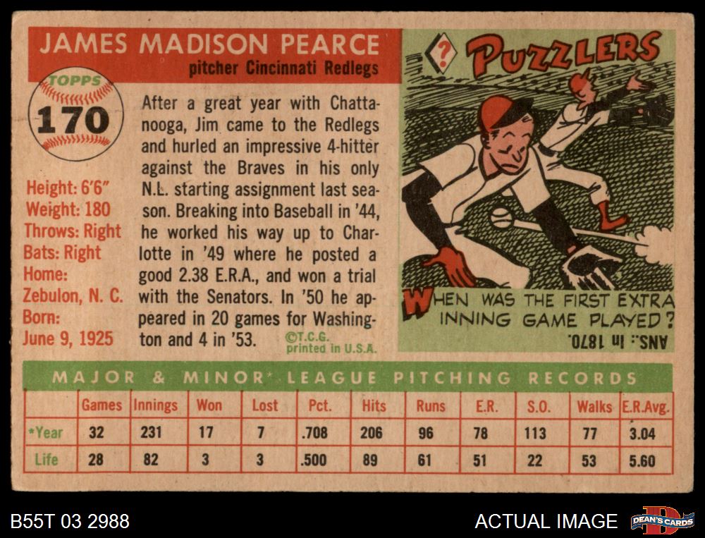 1955 Topps #170 Jim Pearce 2 - GOOD