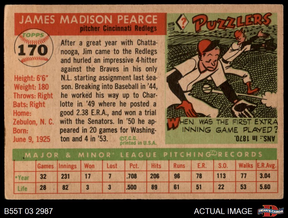 1955 Topps #170 Jim Pearce 3 - VG