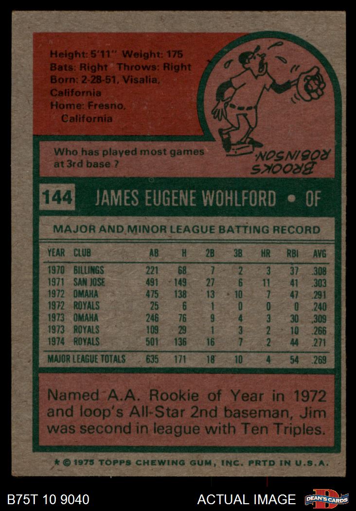 1975 Topps #144 Jim Wohlford 6 - EX/MT